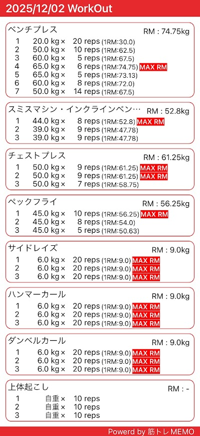 å é±ãã³ããã¬ã¹ã®MAXã 75kgïŒ1repïŒ ã«æŽæ°ãããããããã®æ¥ã¯MAXæŽæ°ã§ã¯ãªãããã¬ãŒãã³ã°ã¢ãŒããã