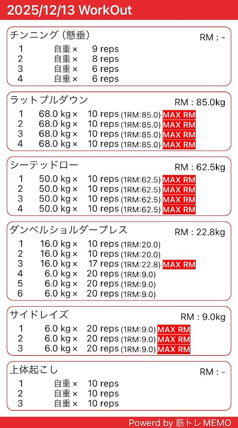 水曜日|背中メイン+肩を少し(マイルール発動)