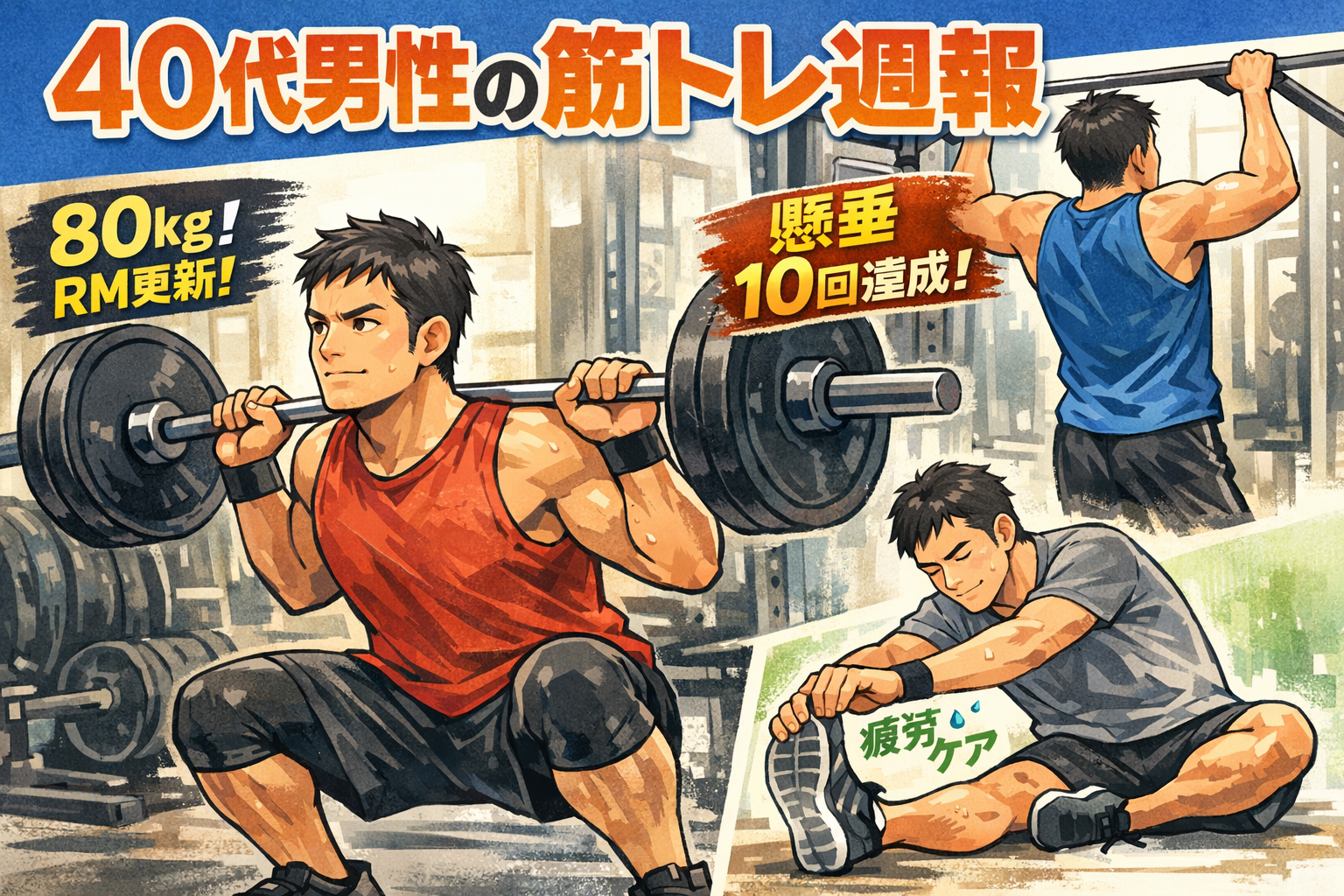 40代男性の筋トレ週報|脚トレでRM更新・懸垂10回達成と疲労管理の重要性を実感した一週間