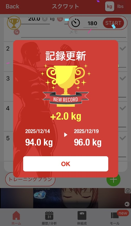しかし、だからこそ40代の筋トレは記録更新の重み停滞を抜けた瞬間の喜びが格別です。